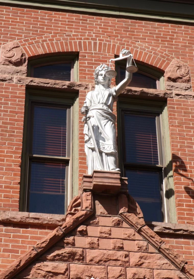 We ultimately settled on a lesser charge. I left unsettled — the scales had tipped, as if Lady Justice had lifted her blindfold to glance at something other than the evidence. Ironically, the statue atop our courthouse is one of the few that isn’t blindfolded.