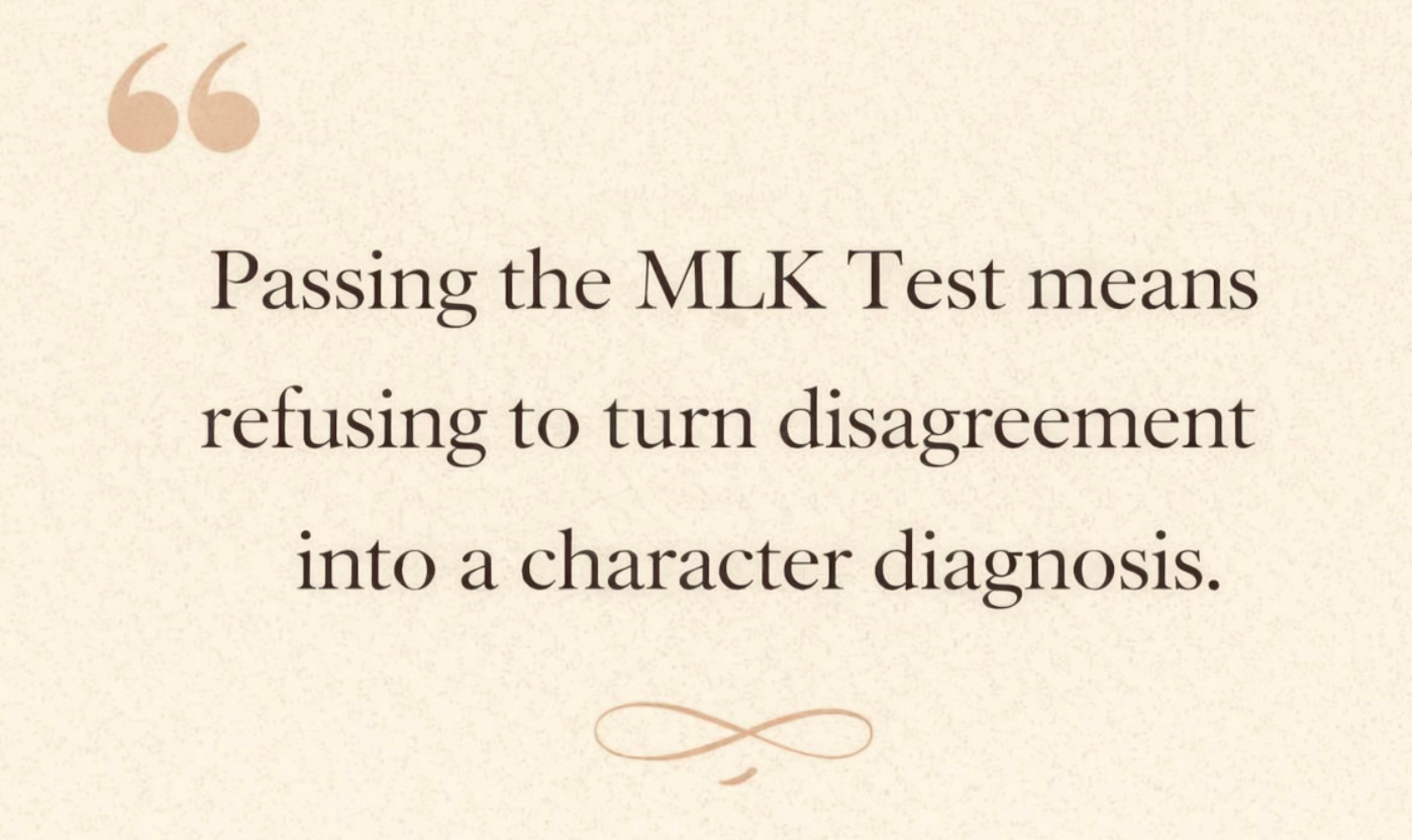 Passing the MLK Test does not mean abandoning judgement. It means refusing to turn disagreement into a character diagnosis.